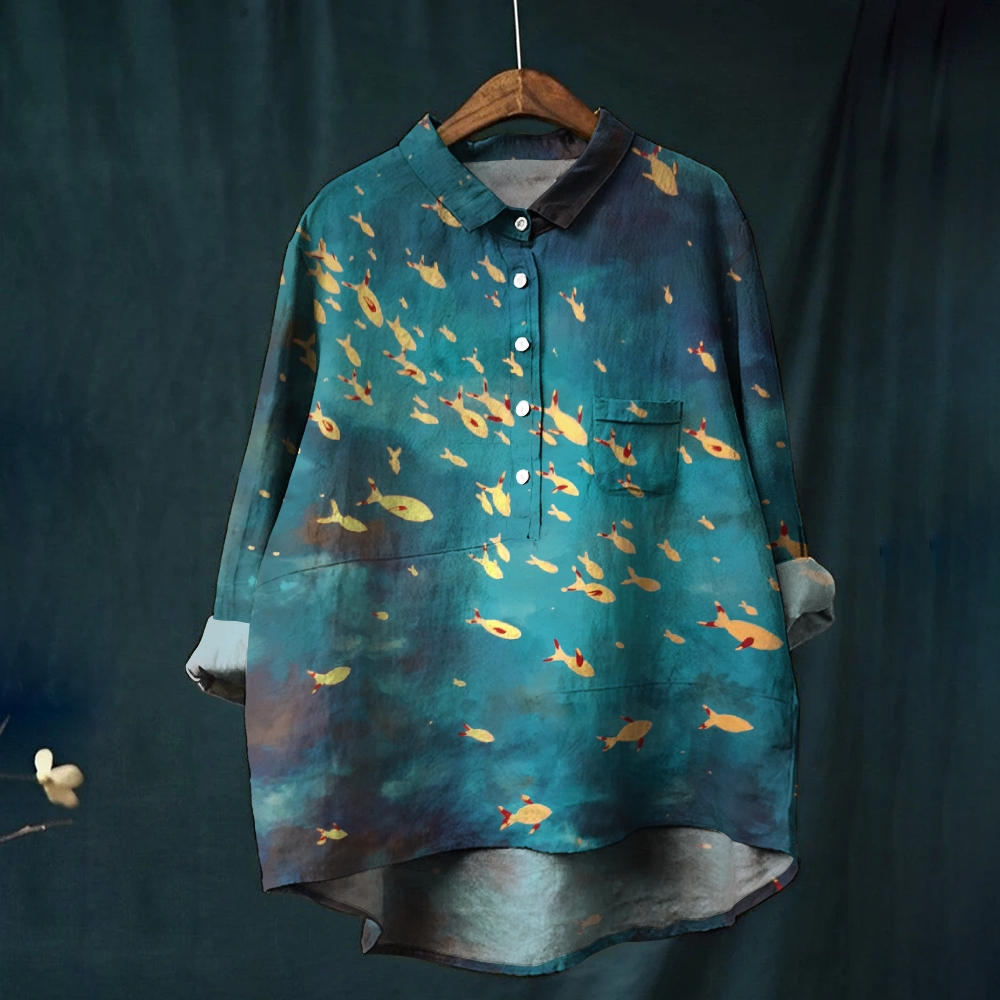 Women's Coral Fish Printed Casual Long Sleeve Shirt