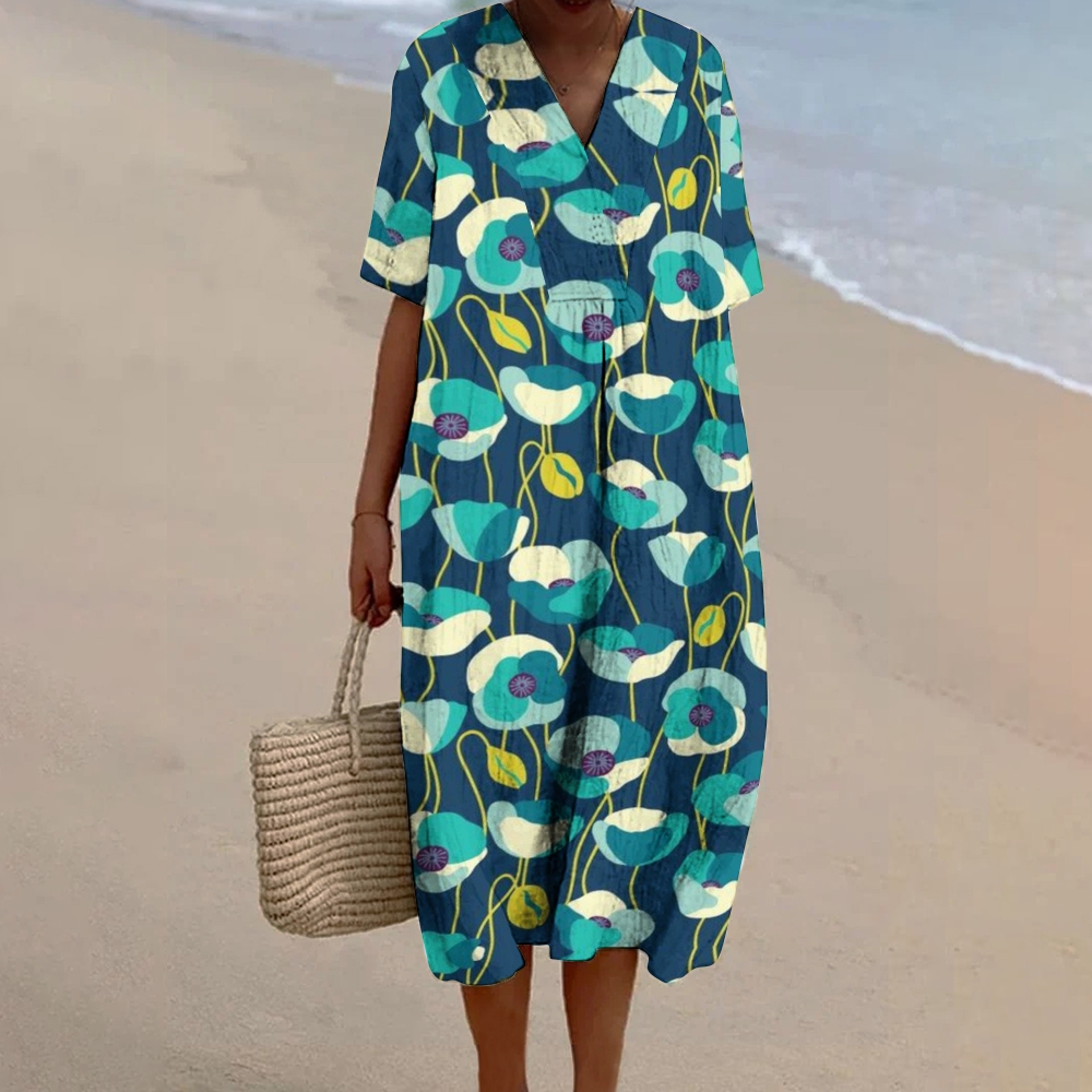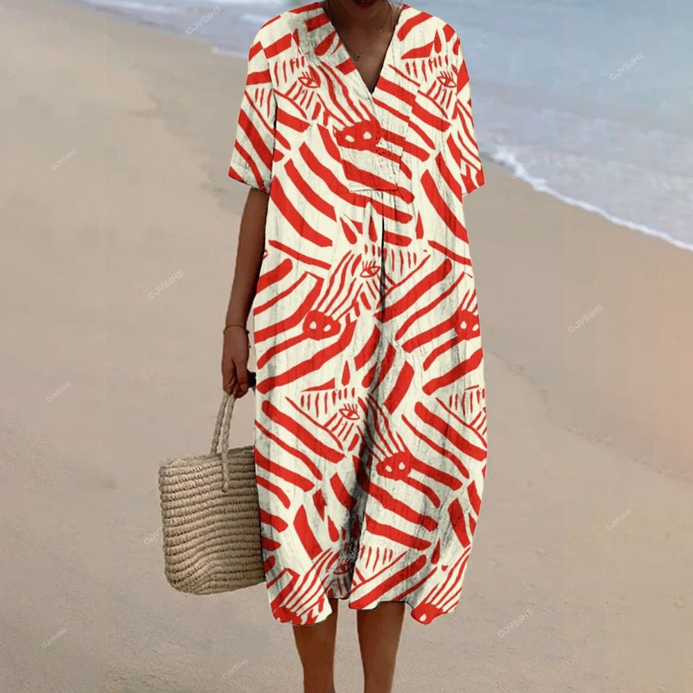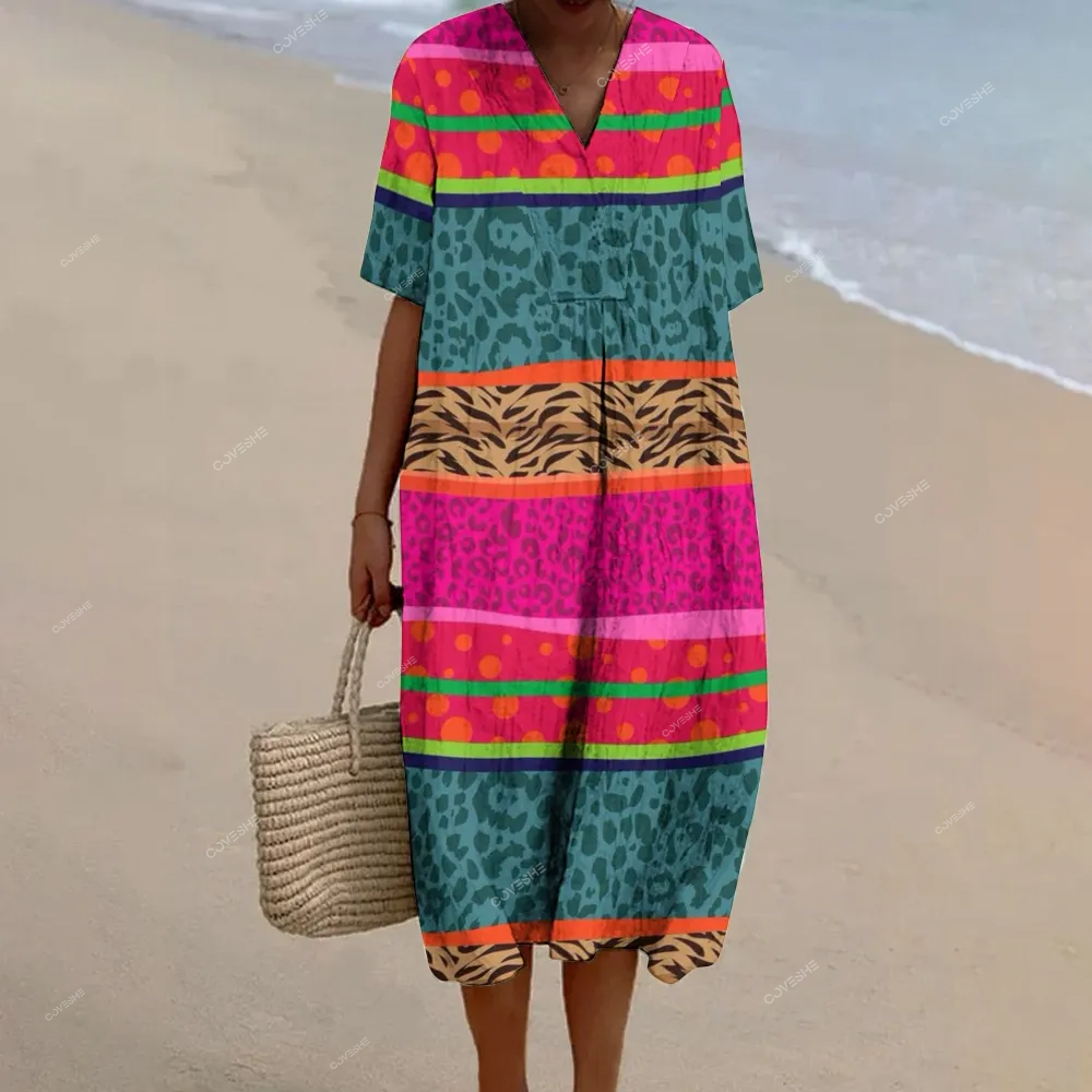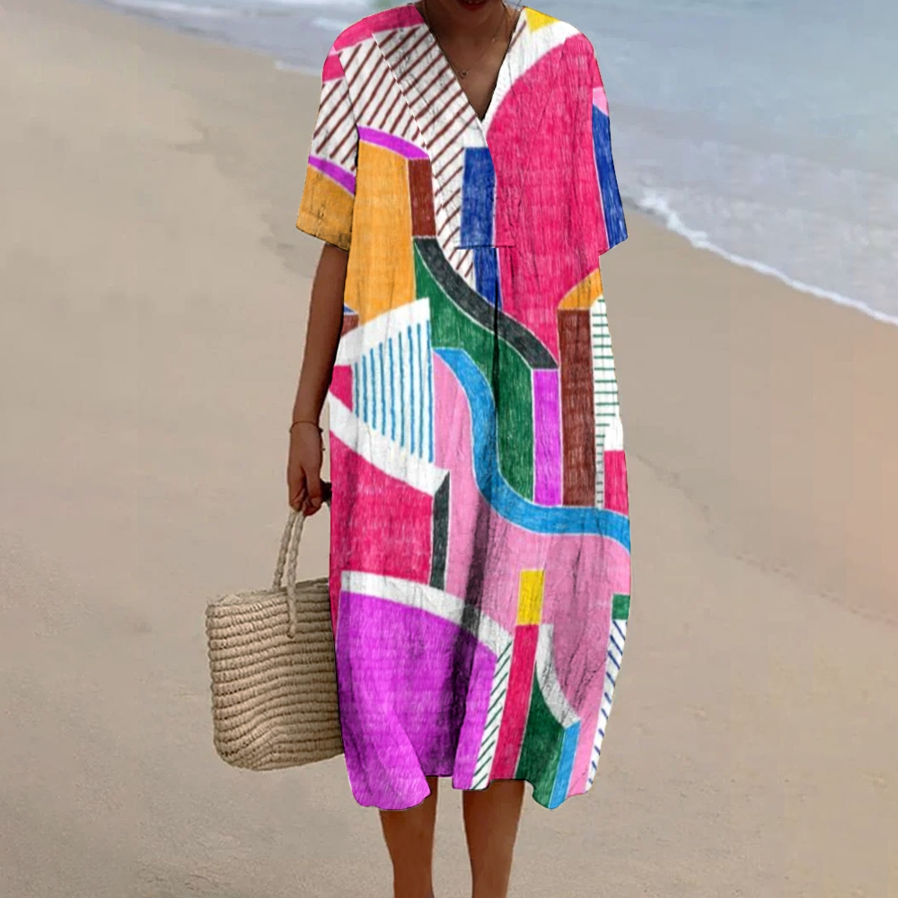 Women's Colorful Geometric Fish Printed Flowy Dress