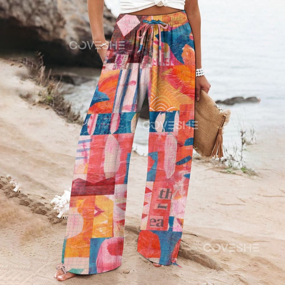 Women's Wide Leg Casual Artistic Geometric Splicing Printed Pants