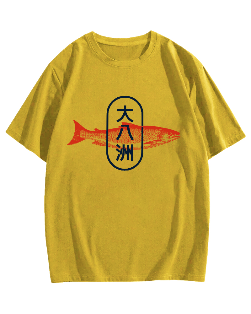 Da Ba Zhou Salmon Japanese Style Cotton Casual T-shirt
