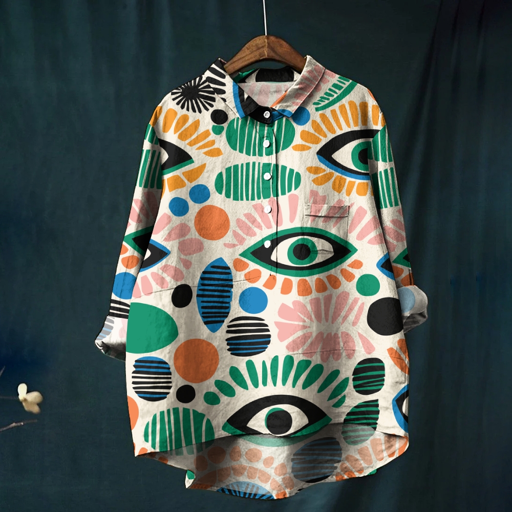 Women's Geometric Abstract Eyes Printed Casual Long Sleeve Shirt