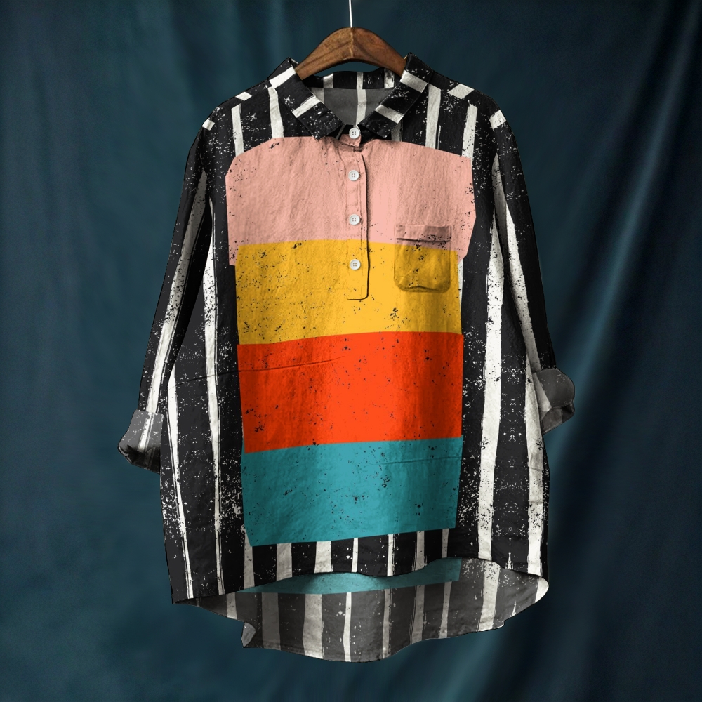 Women's Geometric Striped Color Block Printed Casual Long Sleeve Shirt