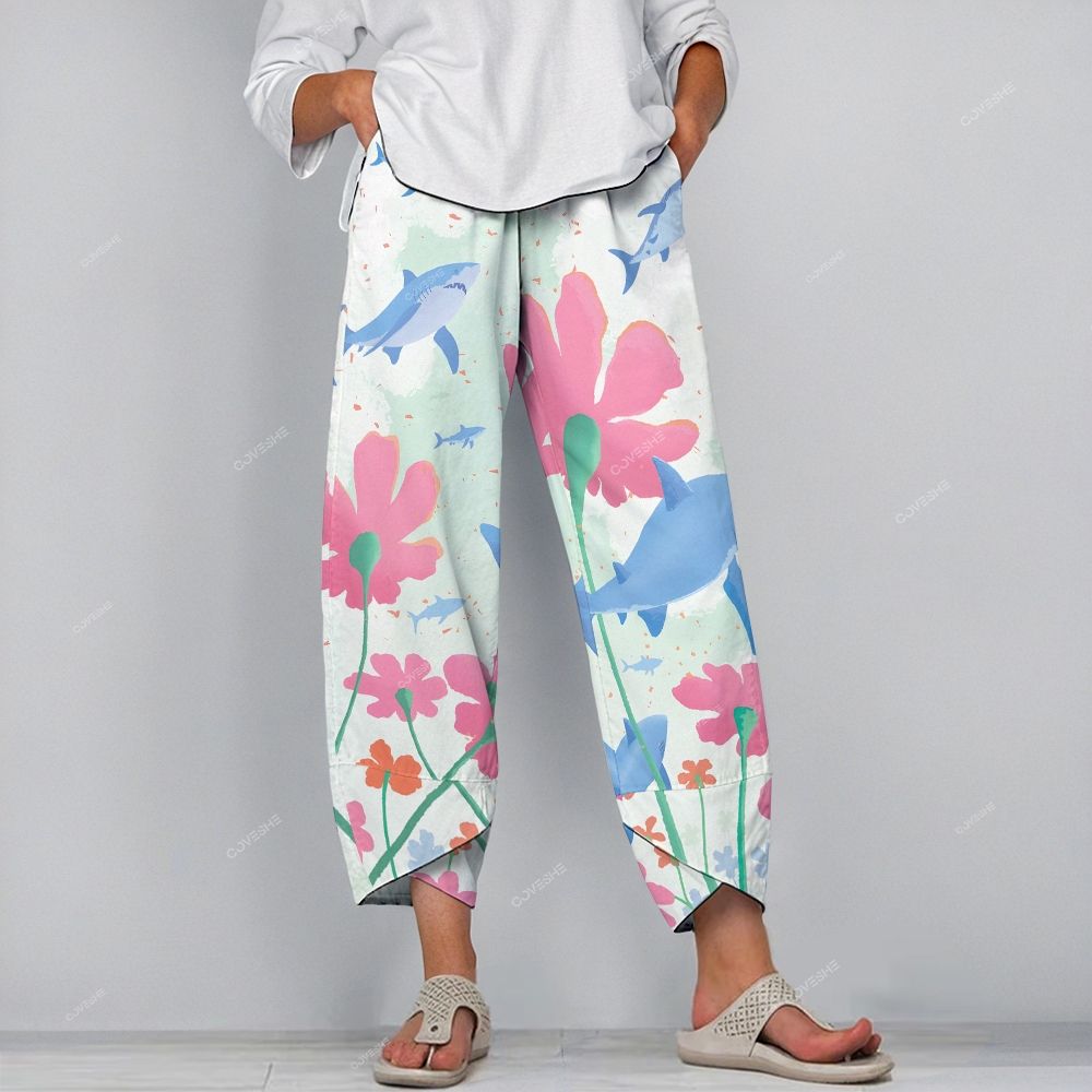 Women's Vintage Floral Art Print Casual Cotton Shirt