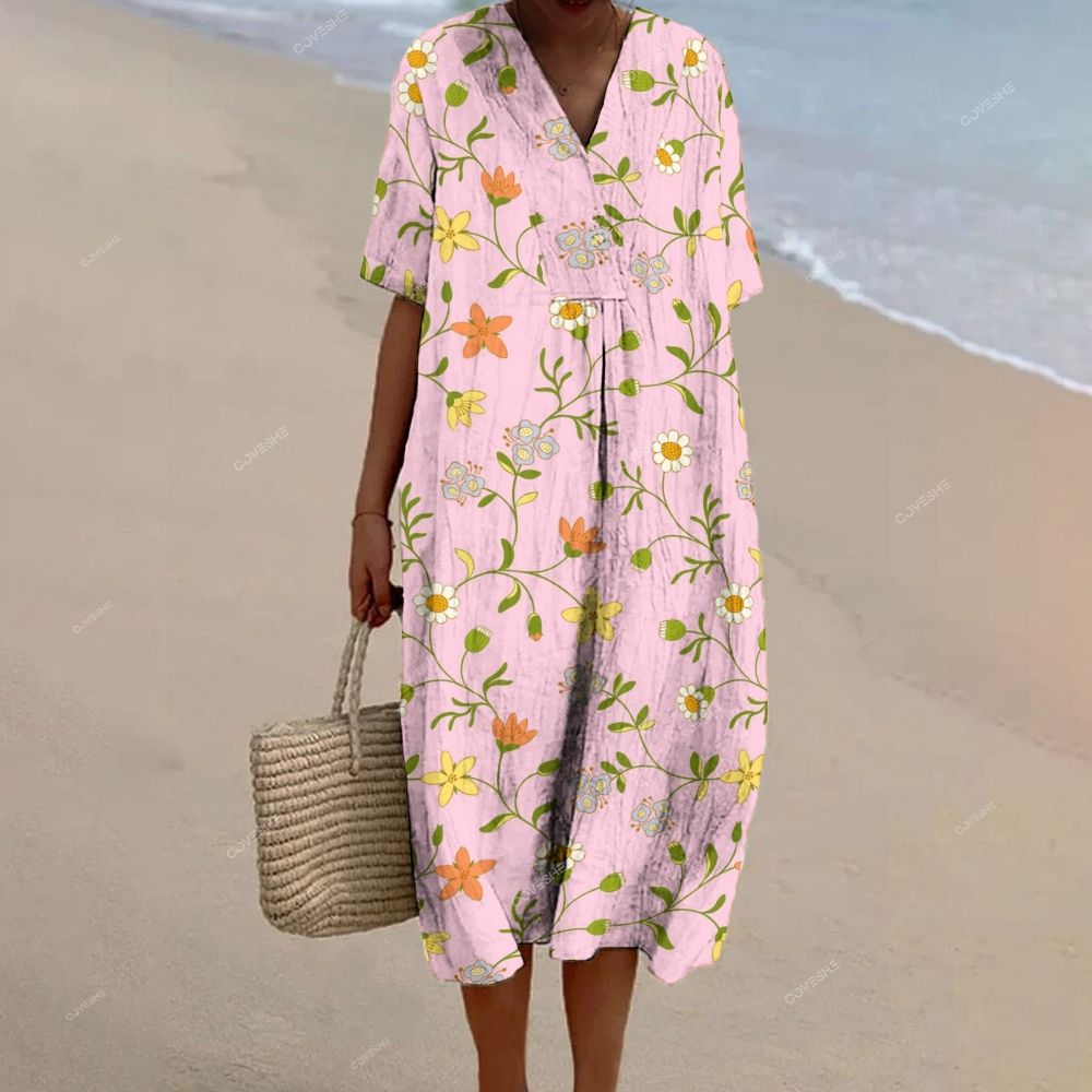 Women's Flower Fruit Stamp Printed Flowy Dress