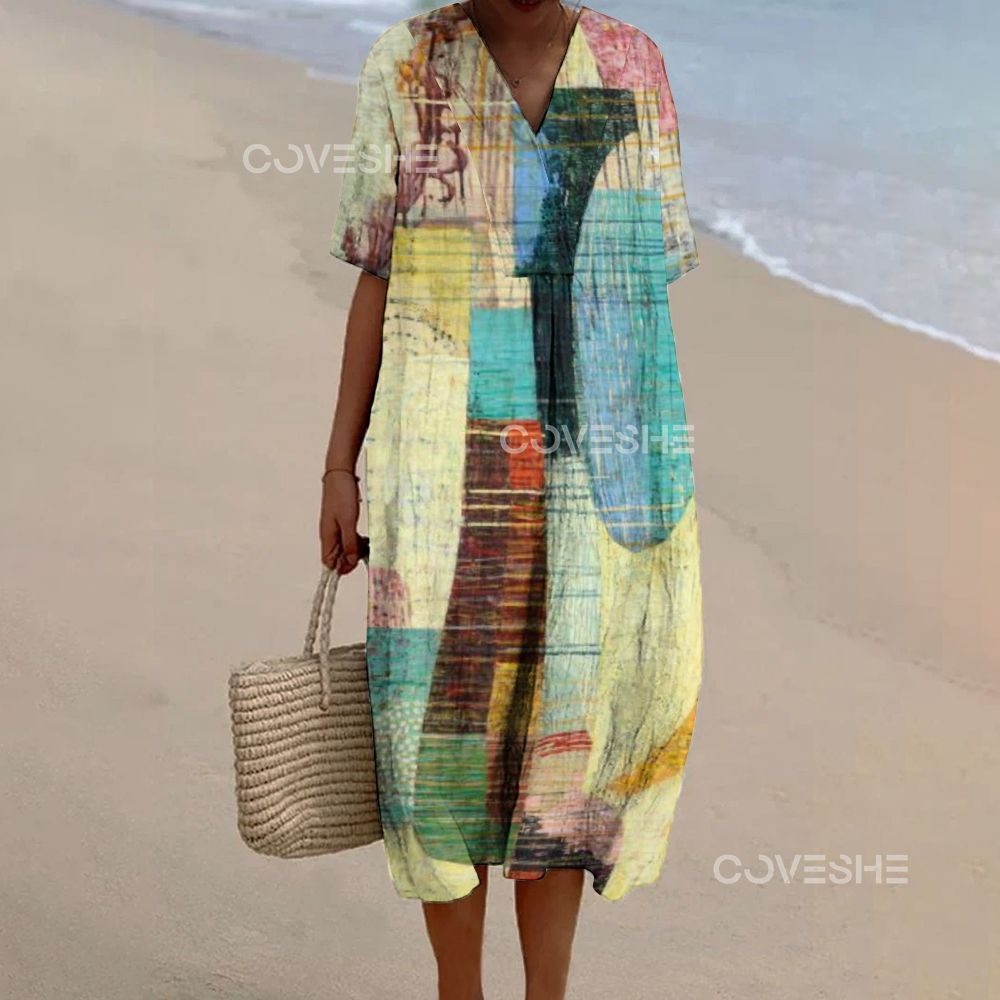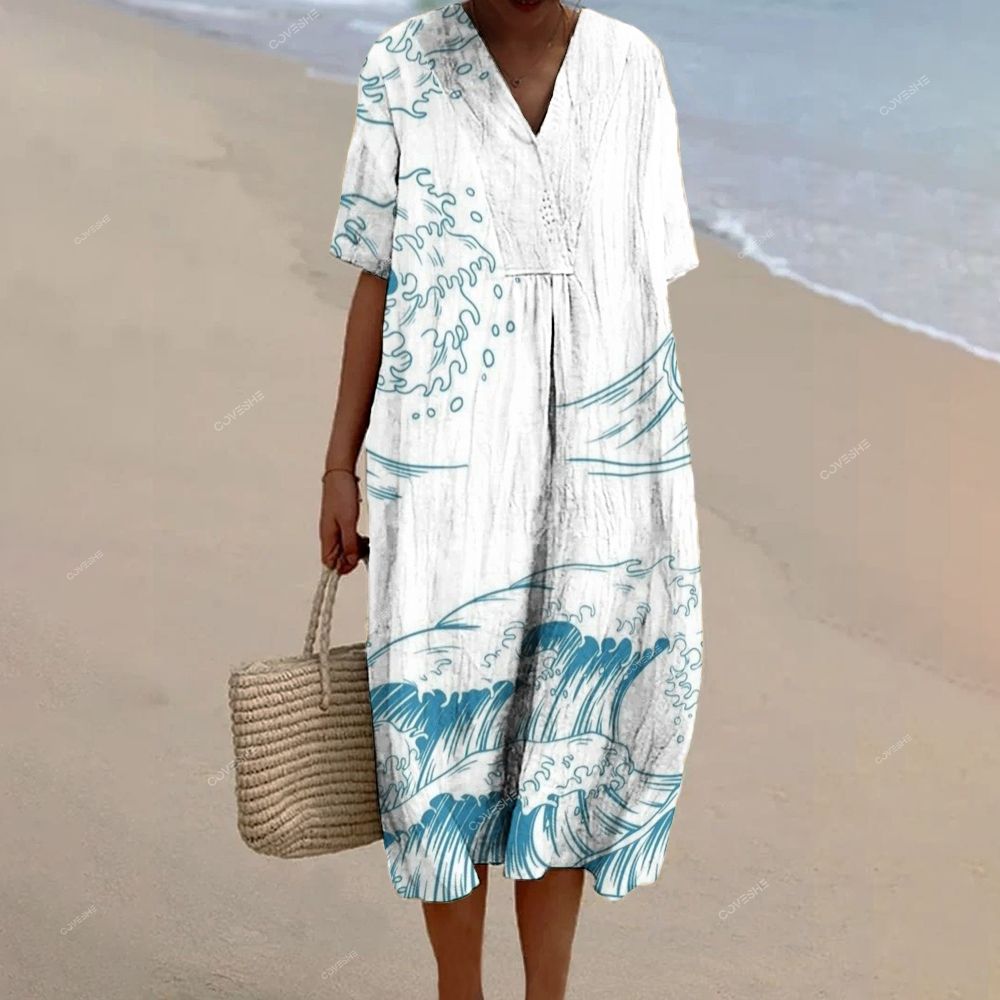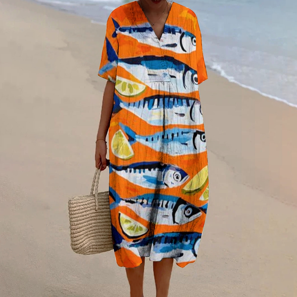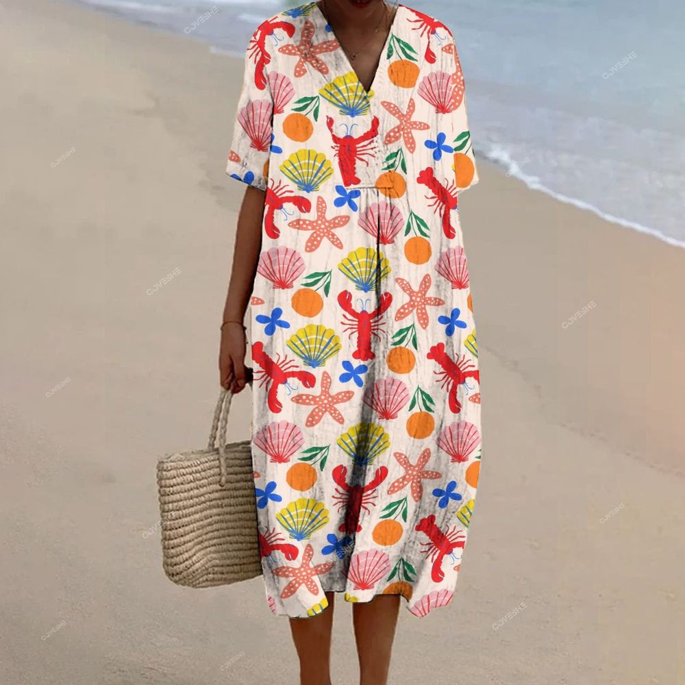Women's Lobster Starfish Shell Printed Flowy Dress