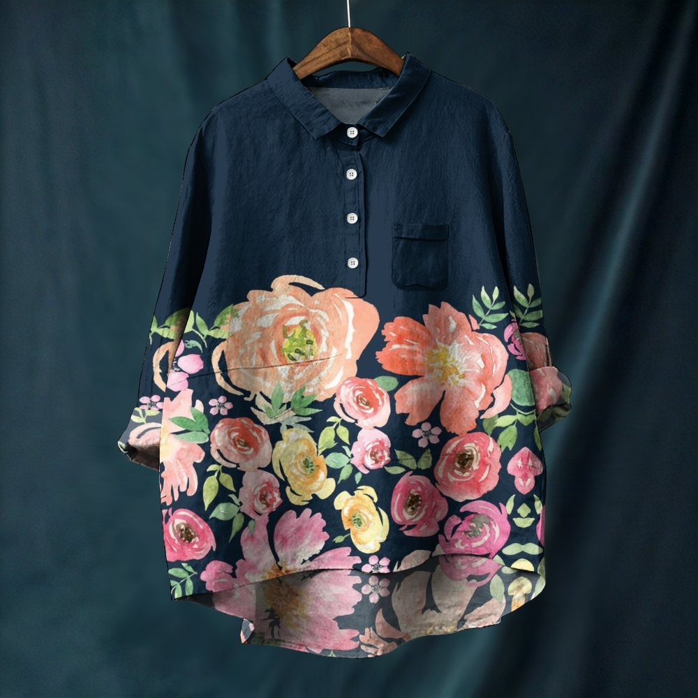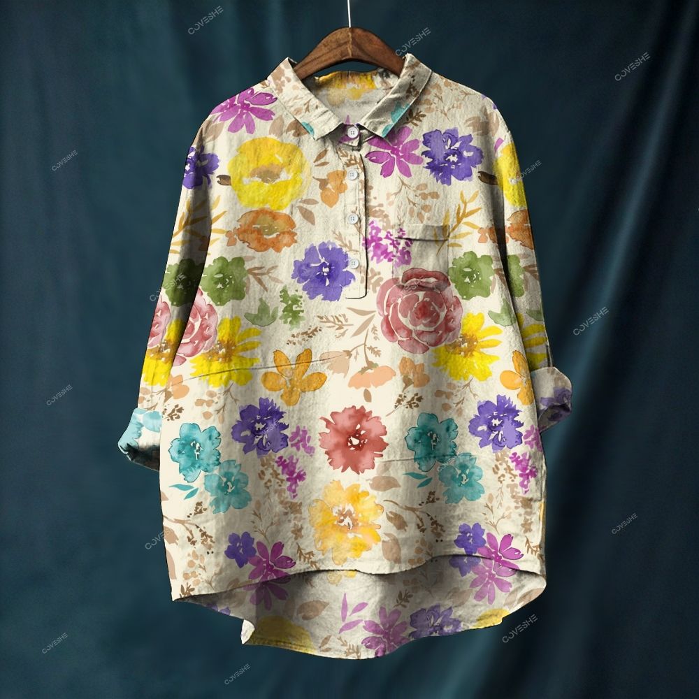 Women's Flowers Printed Casual Long Sleeve Shirt