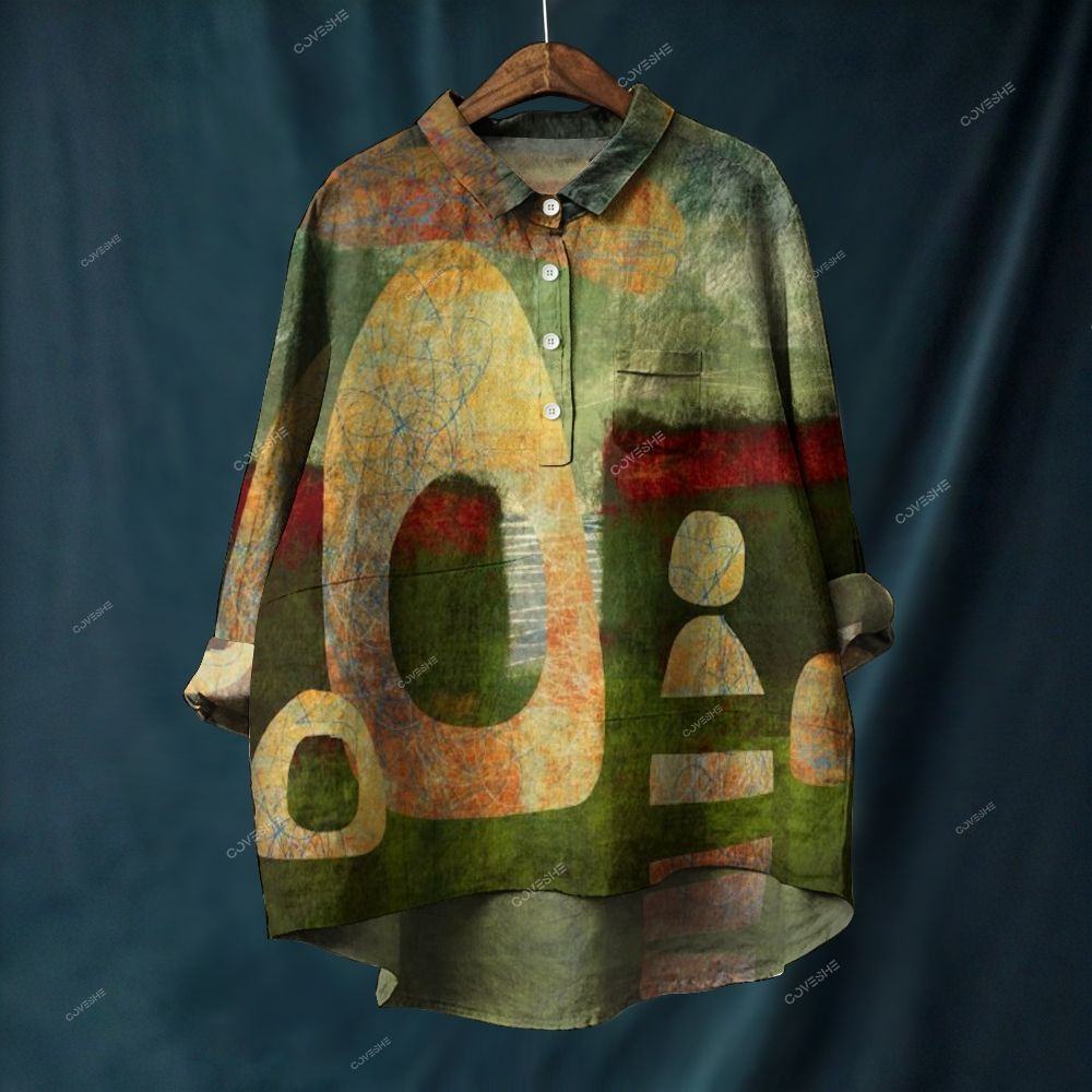 Women's Artistic Portrait Printed Casual Long Sleeve Shirt