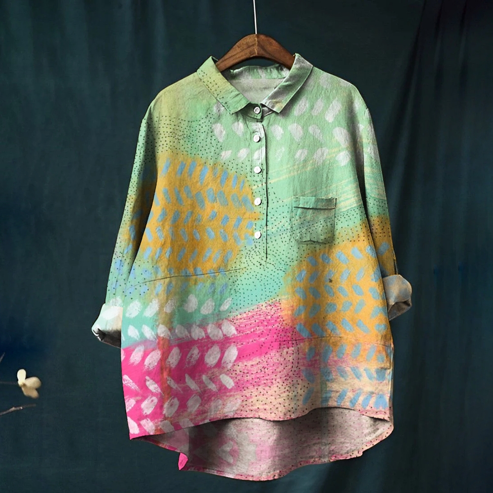 Women's Irregular Geometric Splicing Printed Casual Shirt