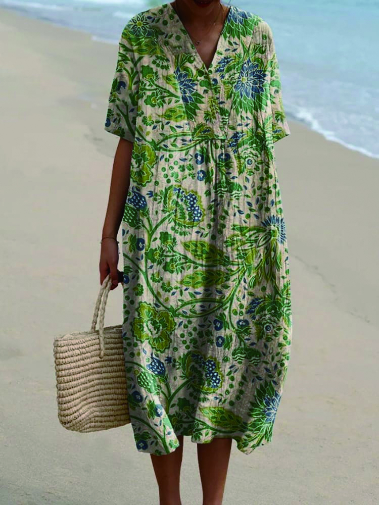 Women's Vintage Flower Art Print Casual Dress