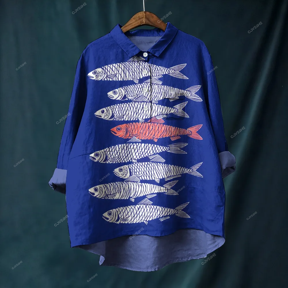 Women's Sardines Printed Casual Long Sleeve Shirt