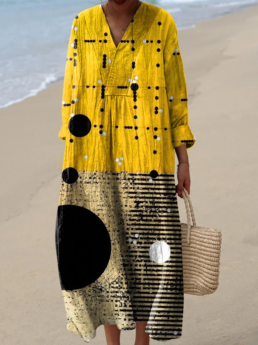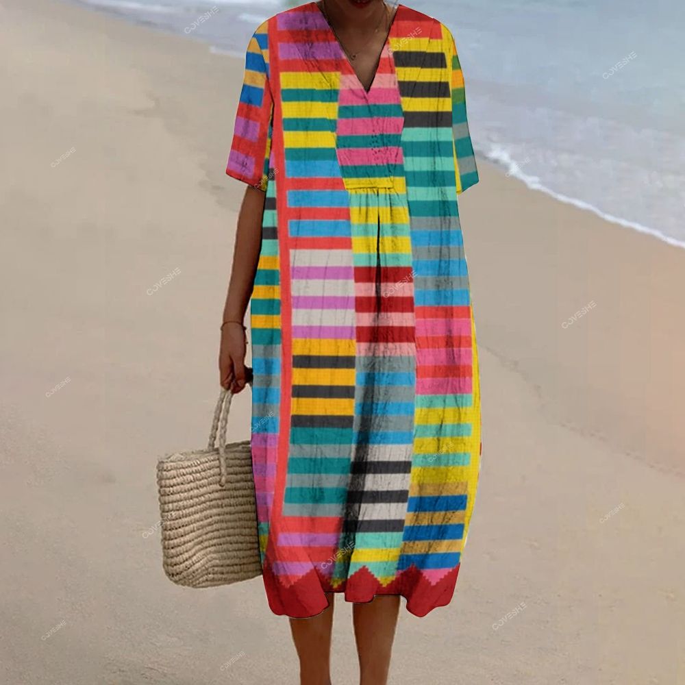 Women's Colorful Geometric Stripes Printed Flowy Dress