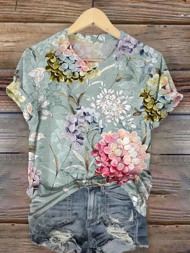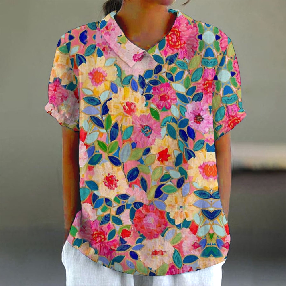 Women's Colorful Flower Print Casual Short Sleeve Shirt