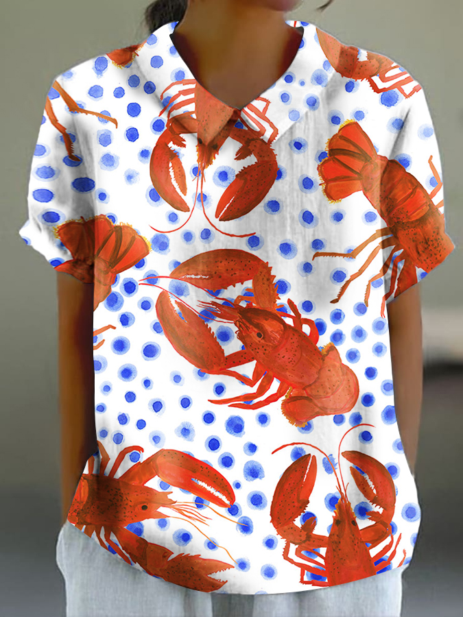 Women's Crayfish Colorblock Print Casual Short Sleeve Shirt