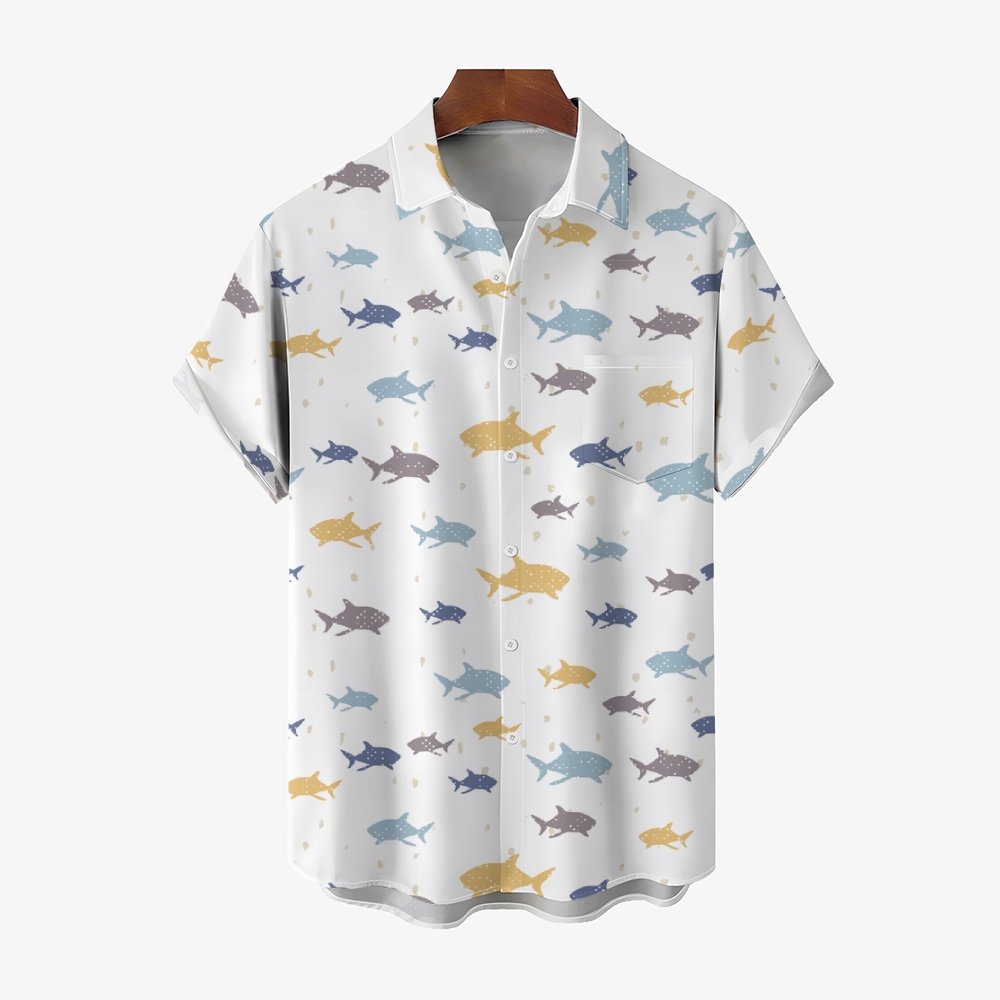 Men's Colorful Shark Print Hawaiian Casual Short Sleeve Shirt
