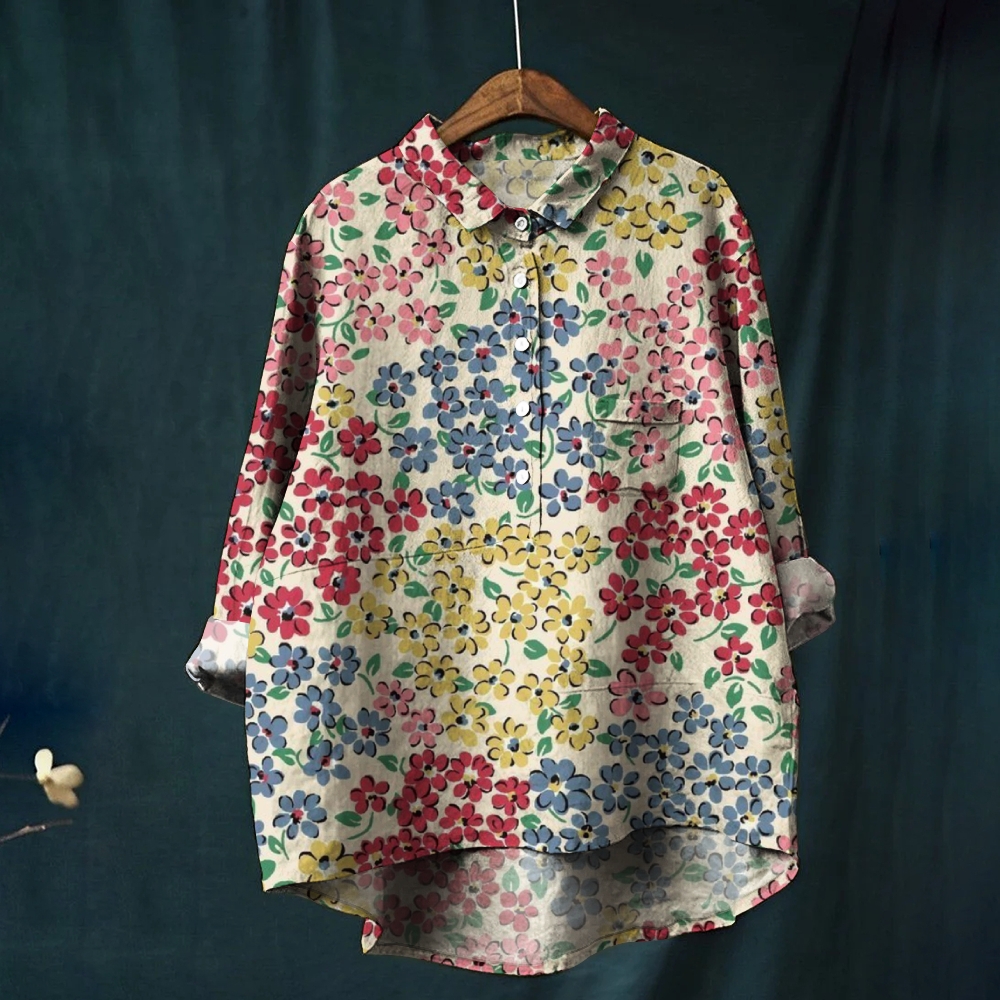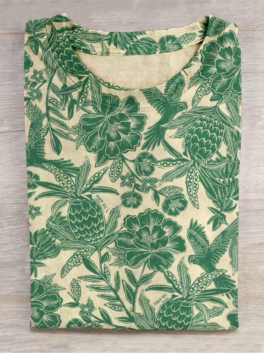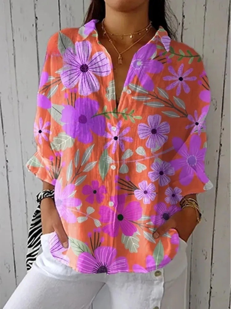 Women's Vintage Floral Art Print Casual V-neck Shirt