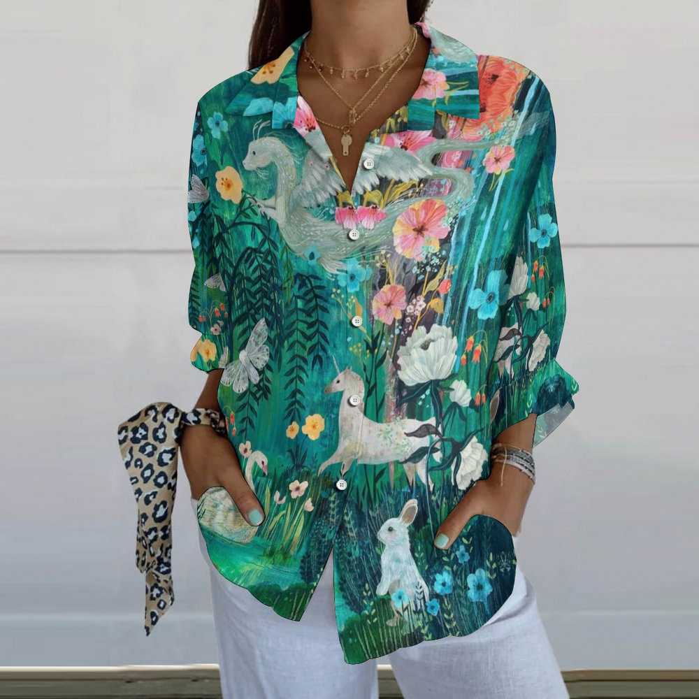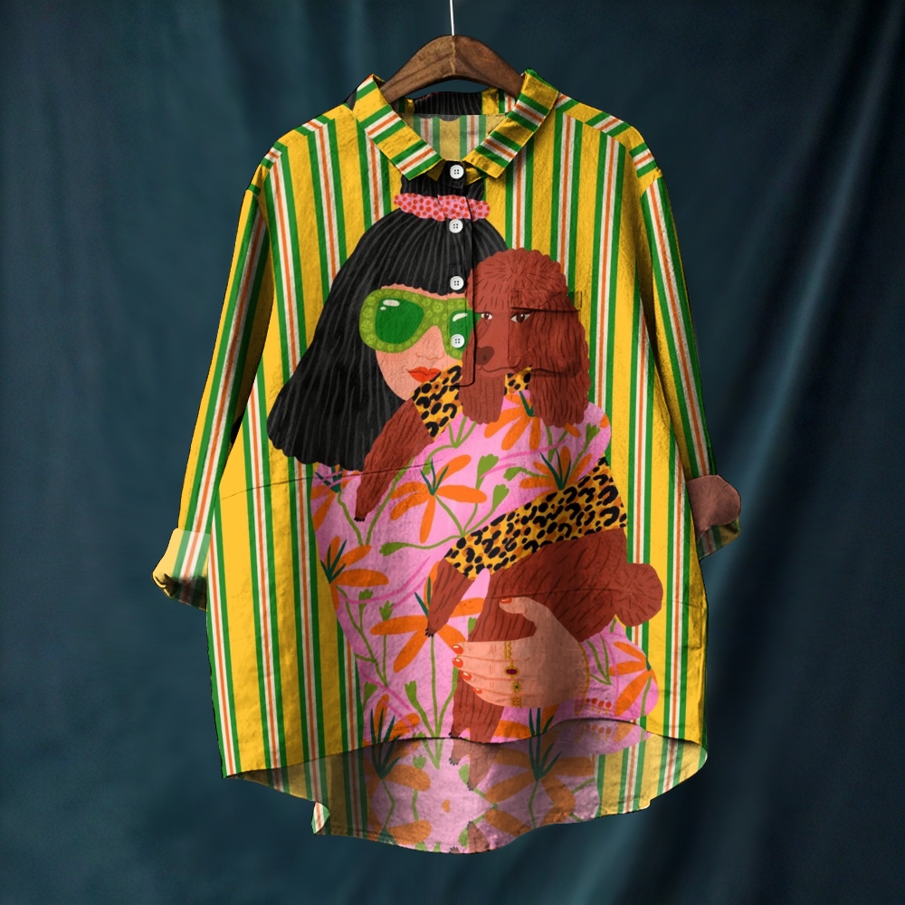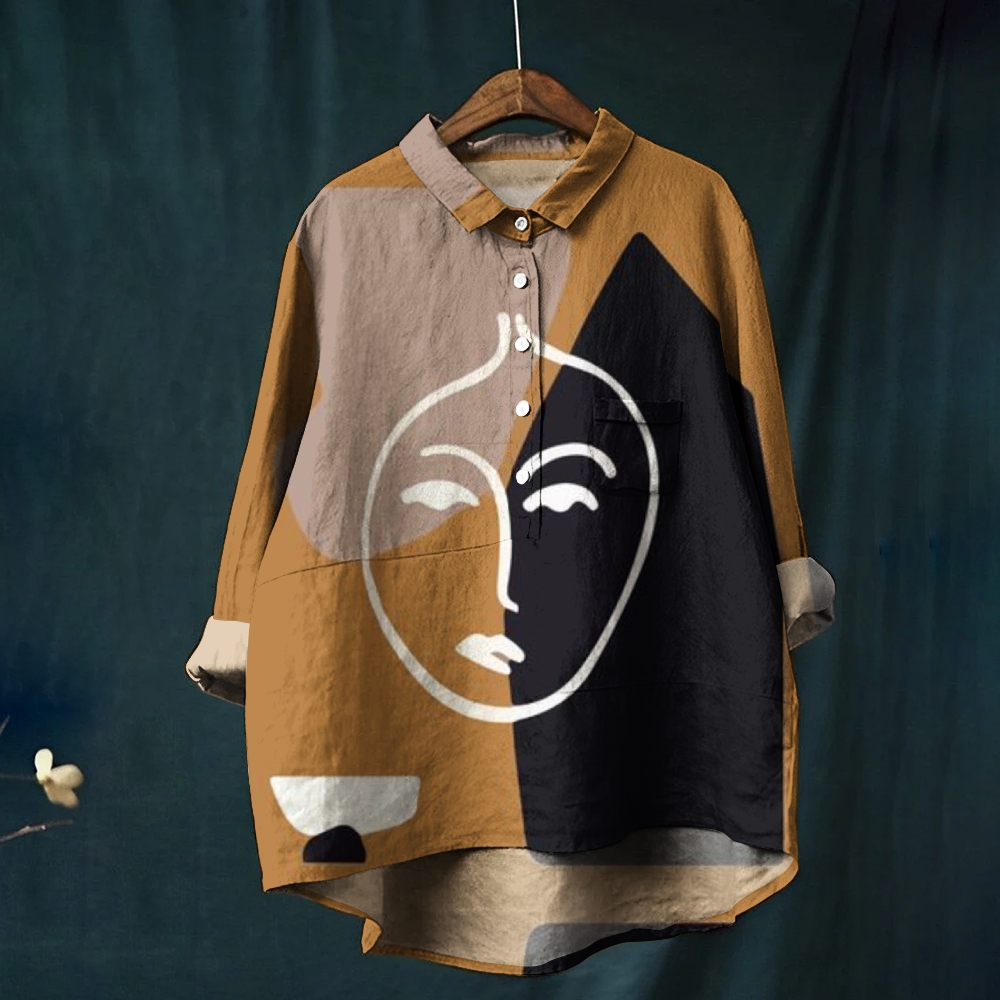 Women's Artistic Portrait Printed Casual Long Sleeve Shirt