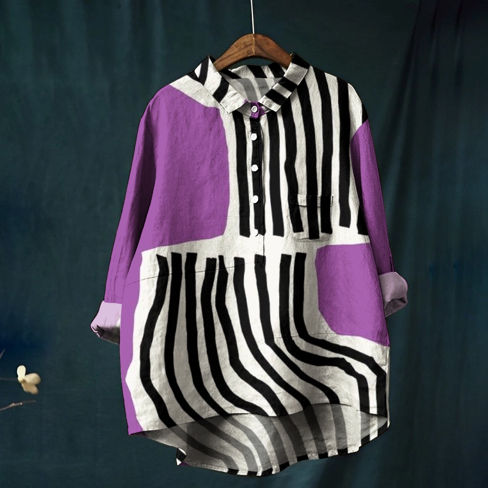 Women's Abstract Face Colorblock Printed Casual Shirt