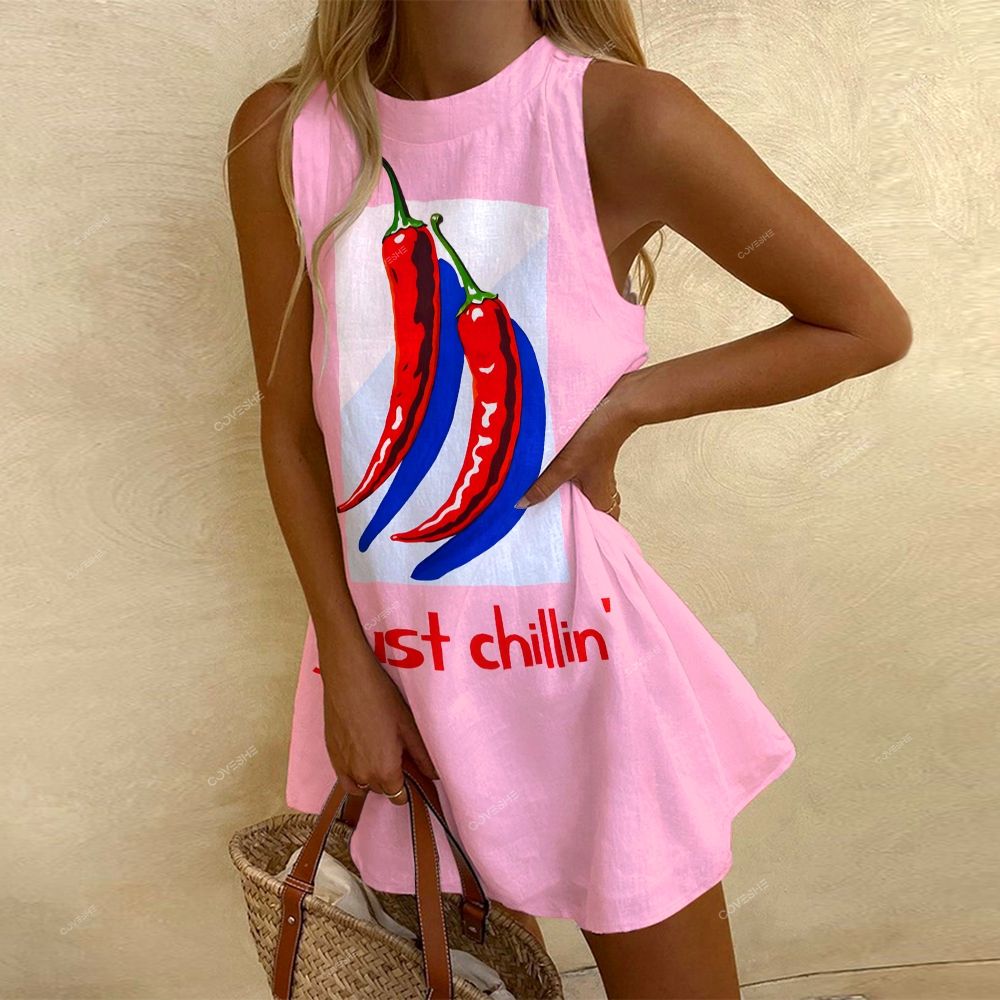 Women's Artistic Cartoon Chicken Printed Flowy Dress