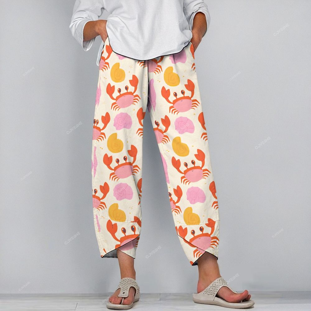 Women's Vintage Fish Market Lobster Art Print Casual Pants
