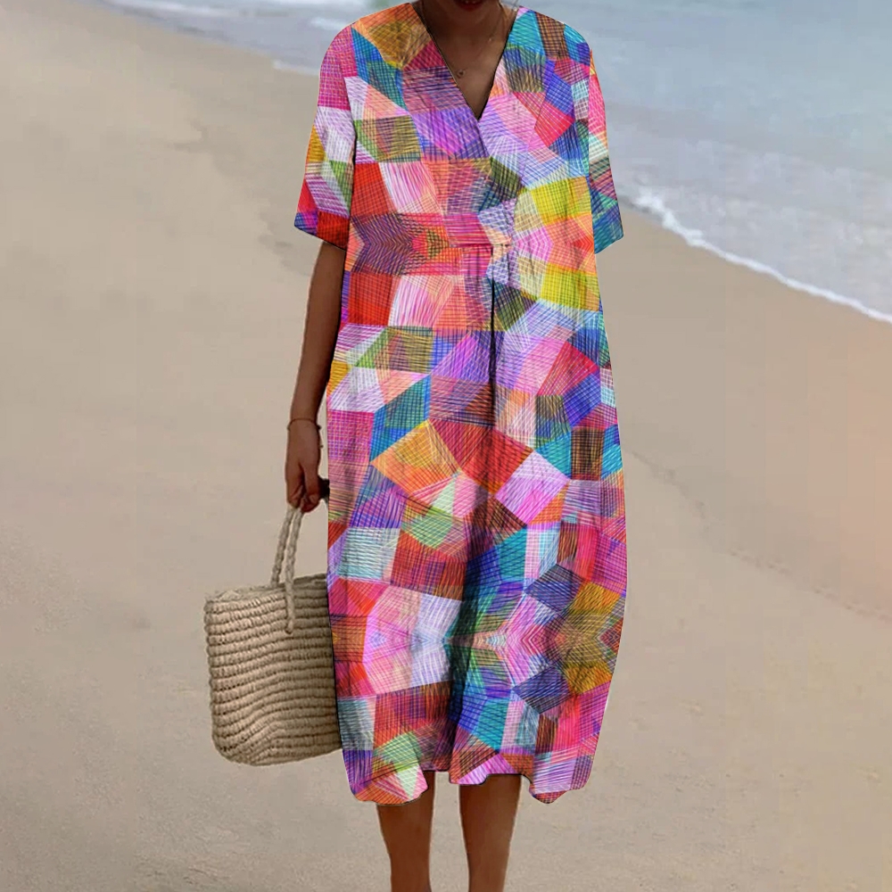Women's Retro Cute Floral Patchwork Art Print Flowing Dress