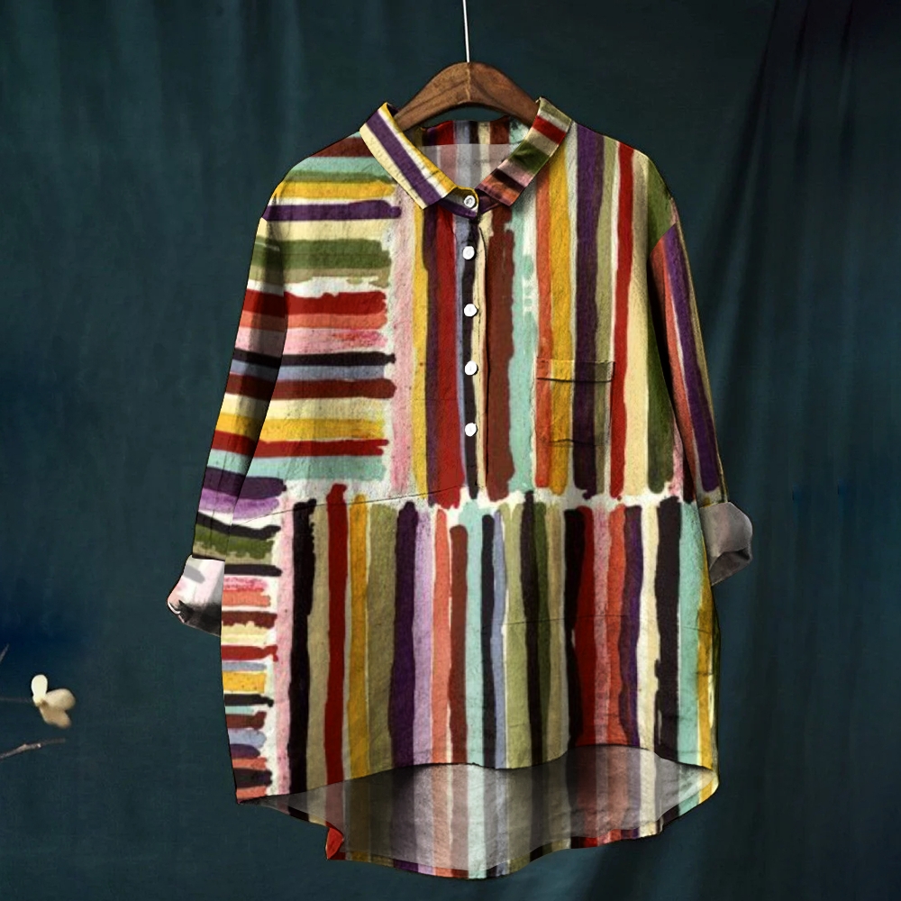 Women's Vintage Colorblock Floral Print Casual Shirt