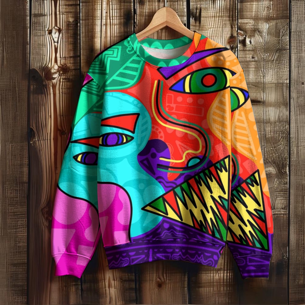 Unisex Artistic Geometric Face Printed Sweatshirt