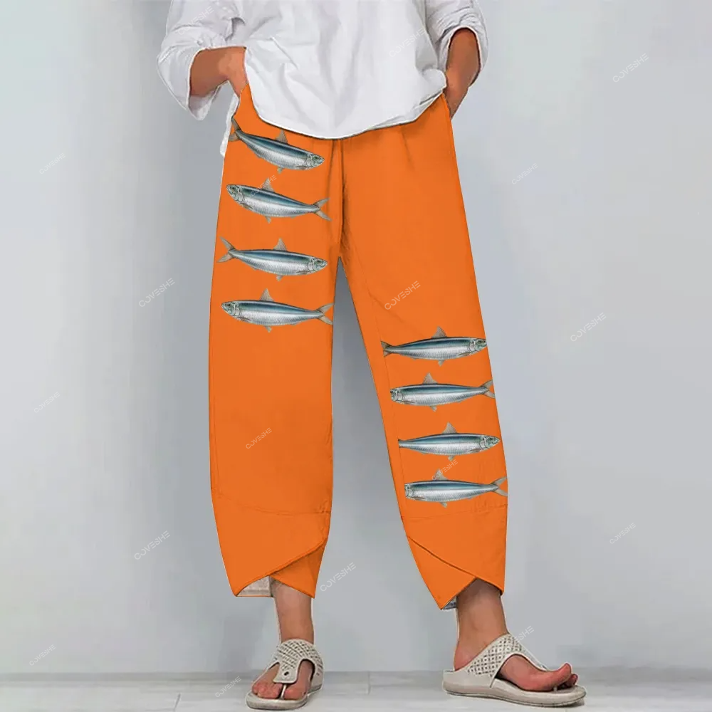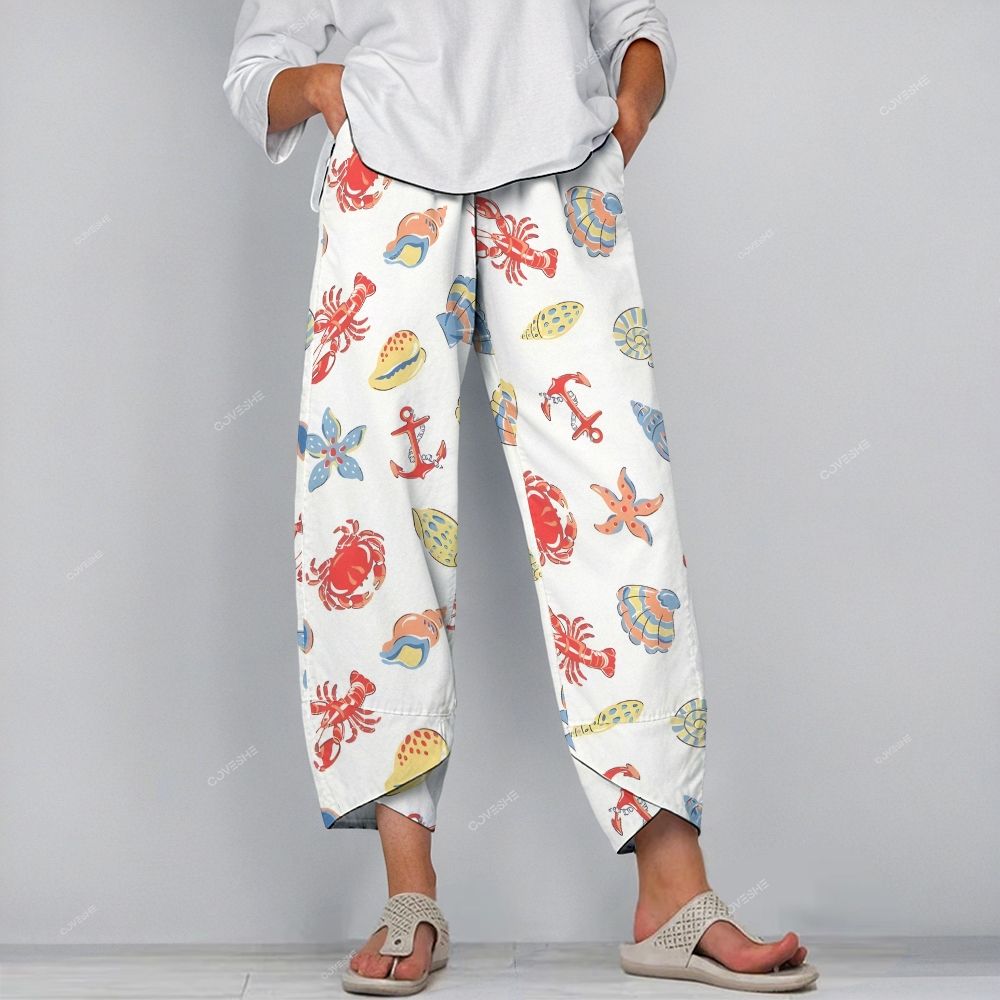 Women's Wide Leg Casual Shell Starfish Printed Pants