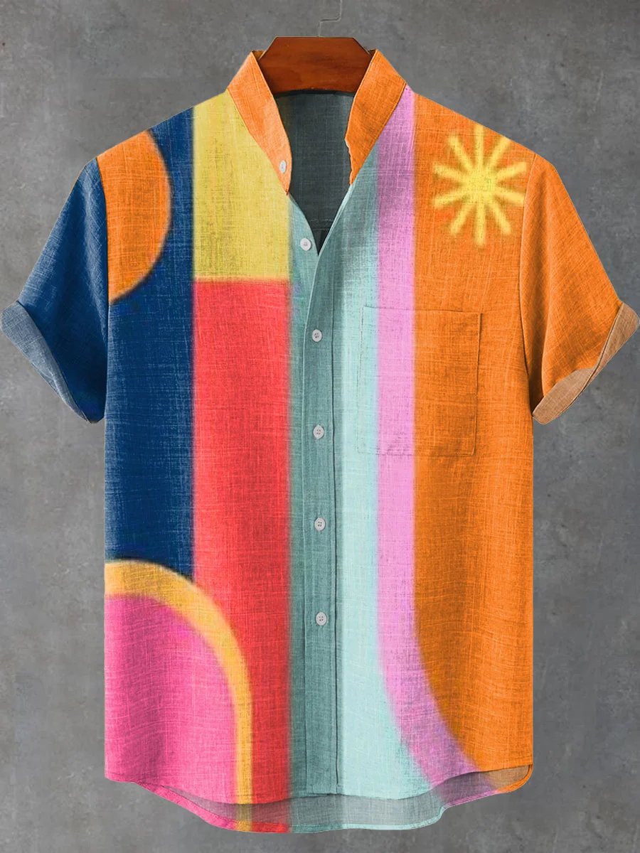 Men's Stand Collar Colorful Printed Short Sleeve Shirt
