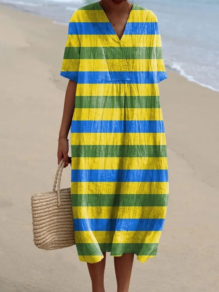 Women's Vintage Fish Art Print Sleeveless Cotton Pocket Wrap Dress
