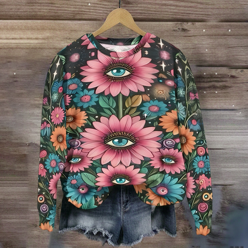 Unisex Vintage Flower Eyes Printed Sweatshirt