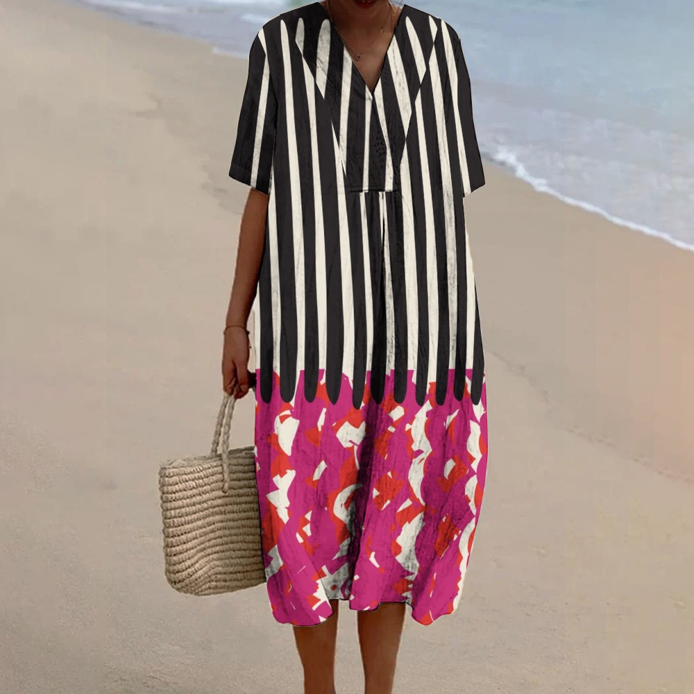 Women's Stripe Patchwork Printed Flowy Dress