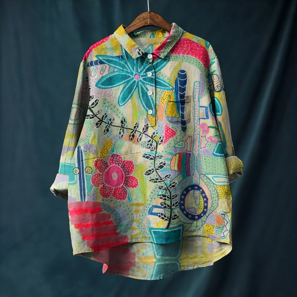 Women's Artistic Flower Print Casual Shirt