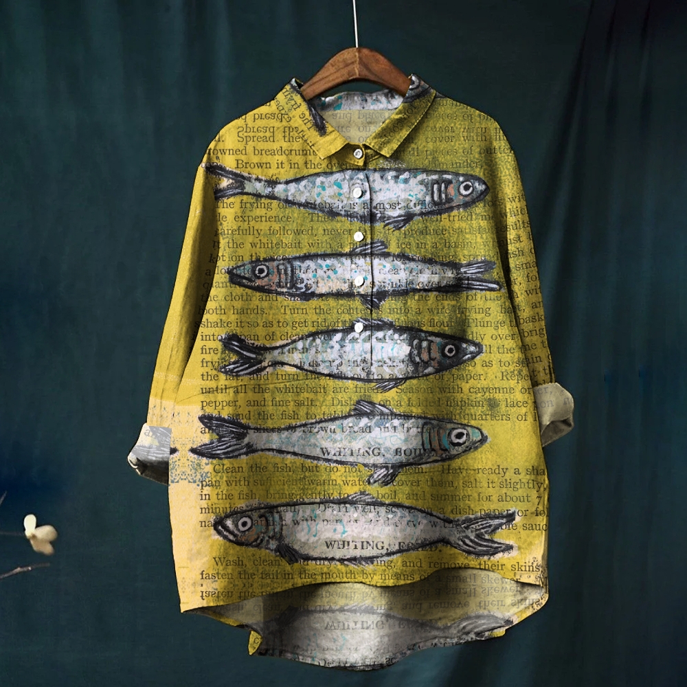 Women's Vintage Funny Cat Art Print Casual Shirt