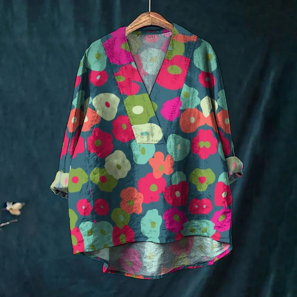 Women's Fresh Flowers Art Print Casual V-neck Shirt