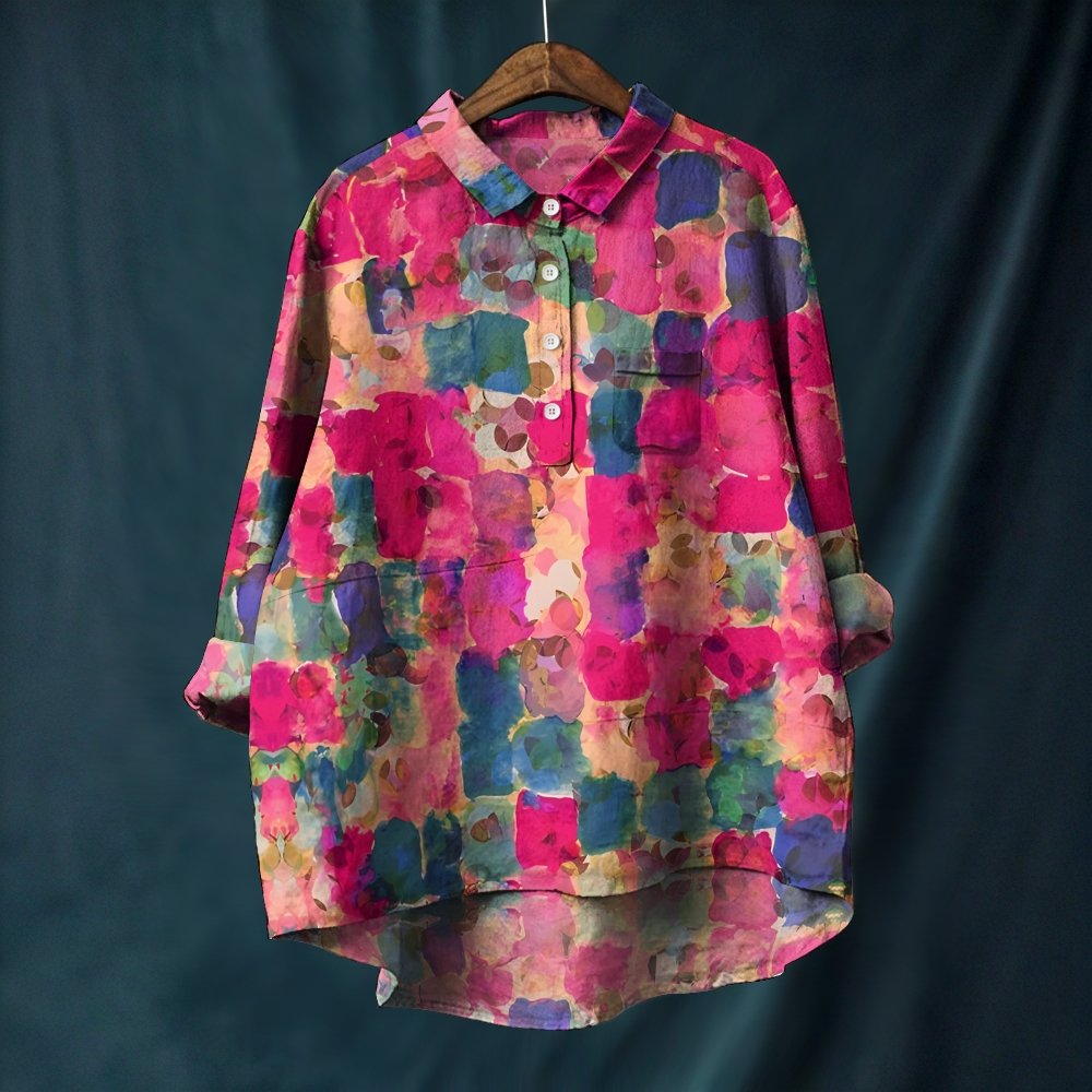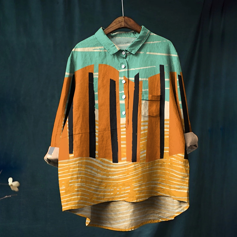 Women's Geometric Square Printed Casual Long Sleeve Shirt