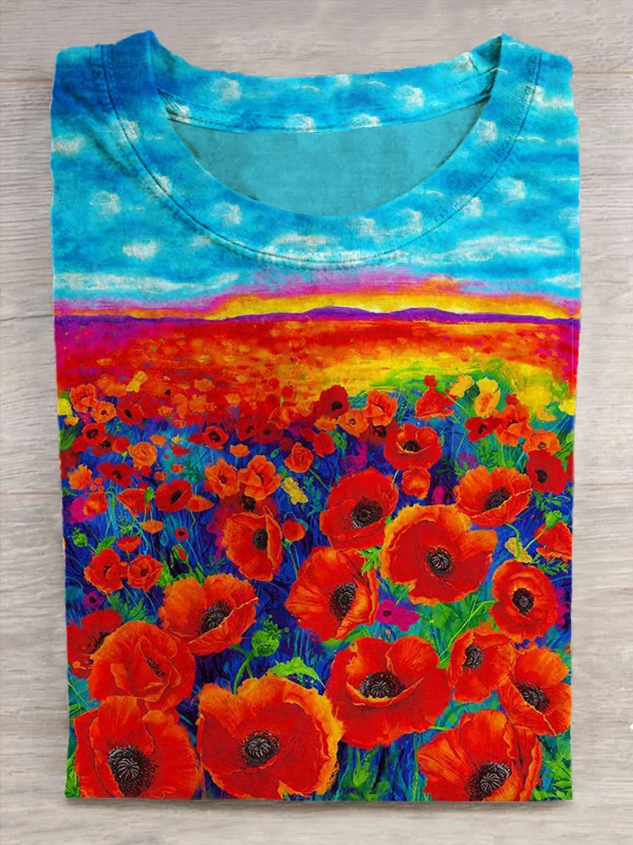 Oil Painting Landscape Flower Abstract Print T-Shirt