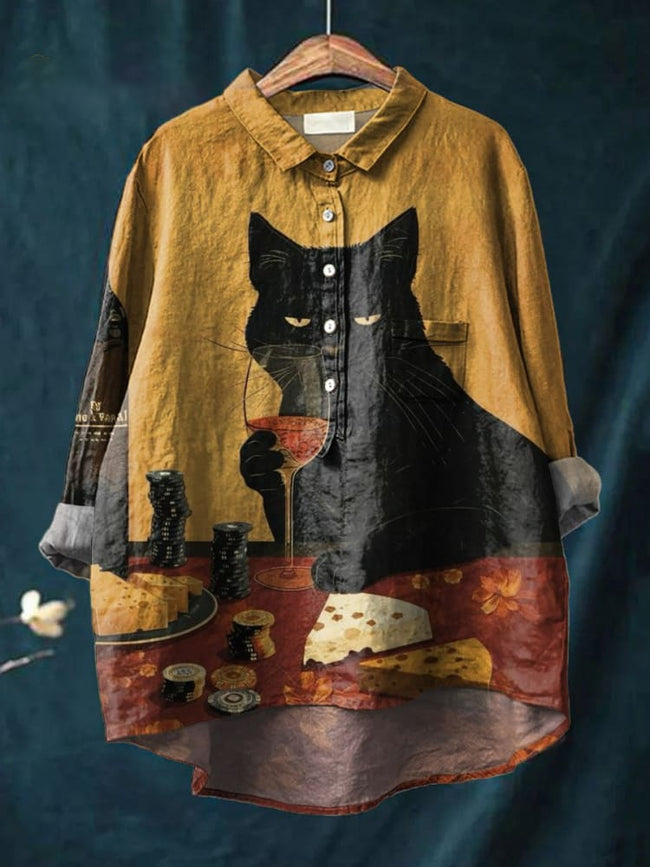 Vintage Funny Cat Art Print Casual Shirt