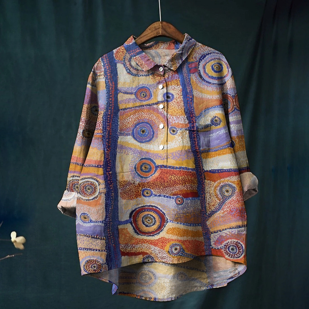 Women's Vintage Colorblock Art Printed Casual Shirt