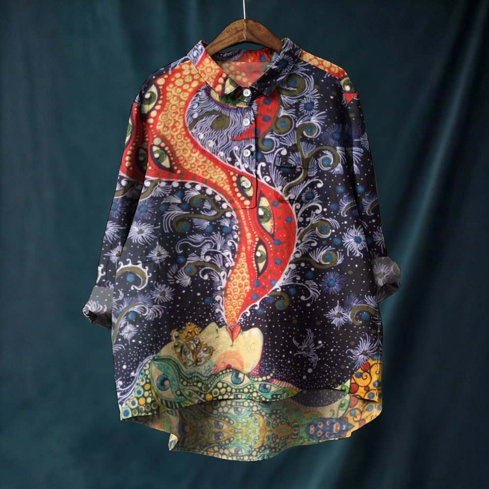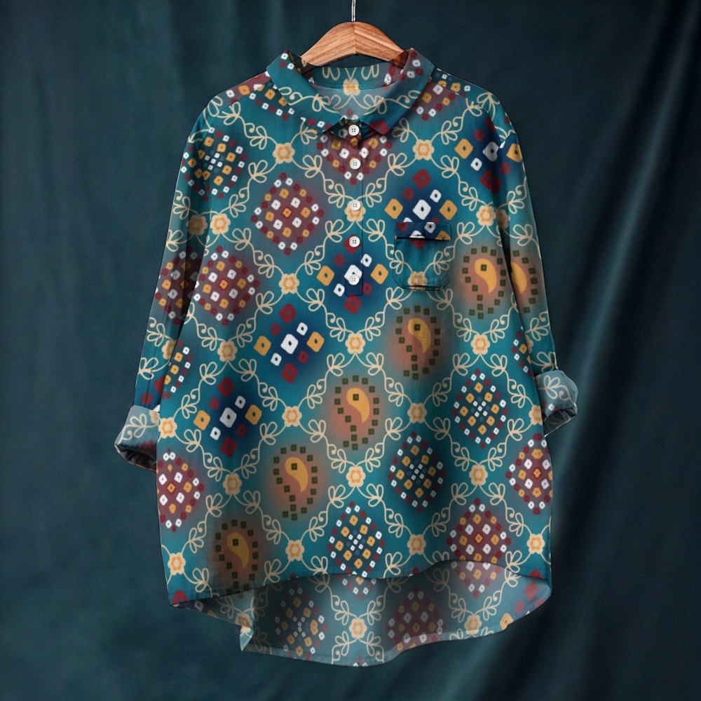 Women's Retro Printed Long Sleeve Casual Shirt