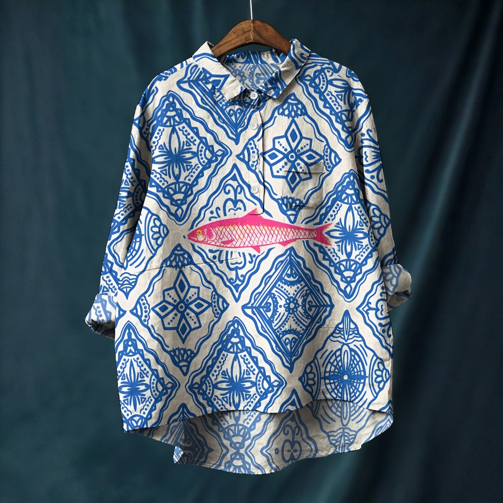 Women's Vintage Fish Printed Casual Long Sleeve Shirt