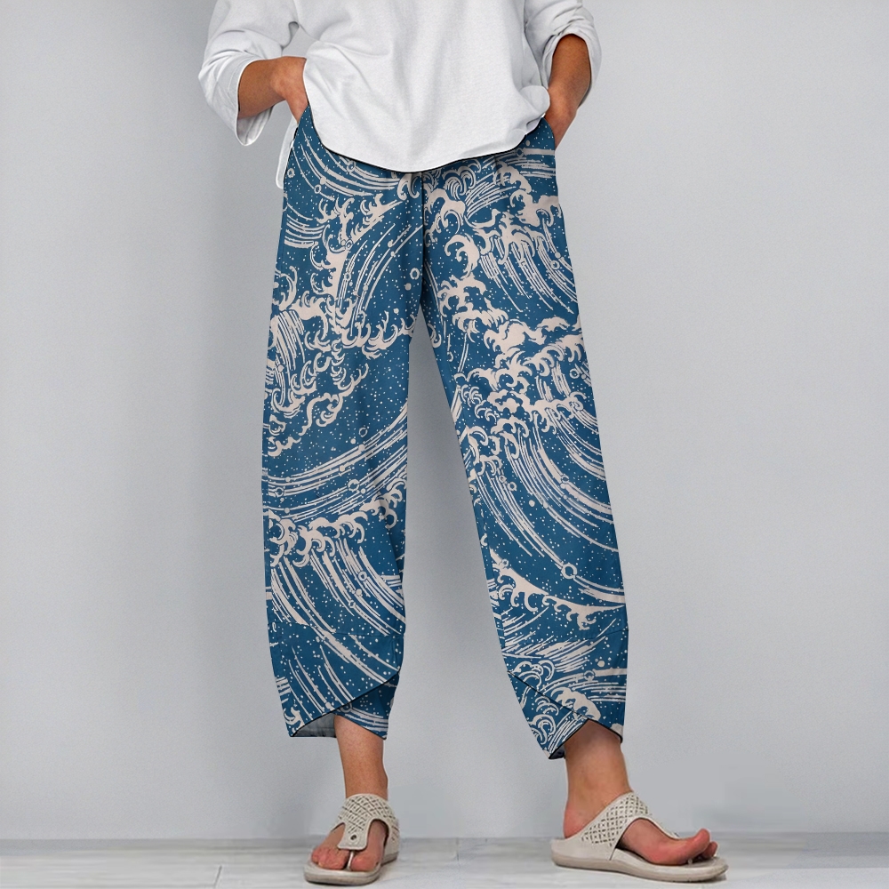 Women's Casual Vintage Waves Printed Japanese Pants