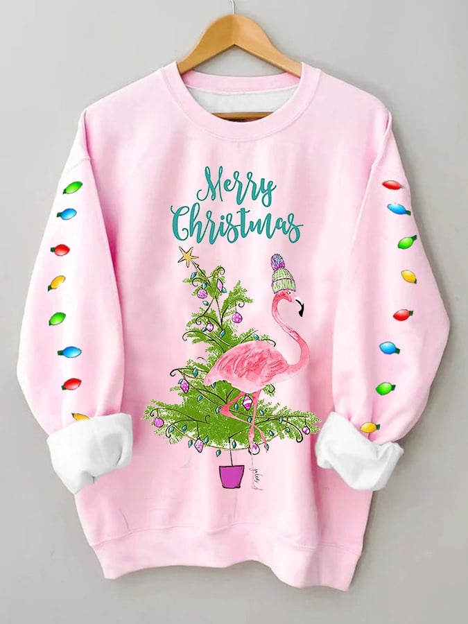 Women's Merry Christmas Flamingo Fun Print Casual Sweatshirt