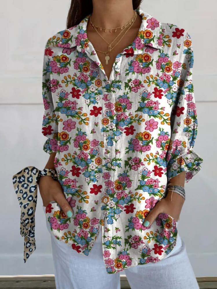 Women's Pastoral Floral Art Print Casual Shirt