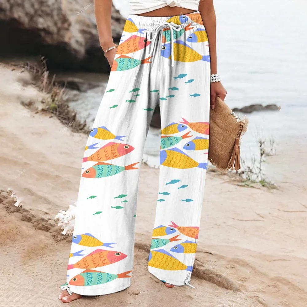 Women's Wide Leg Casual Colorful Cartoon Fish Printed Pants