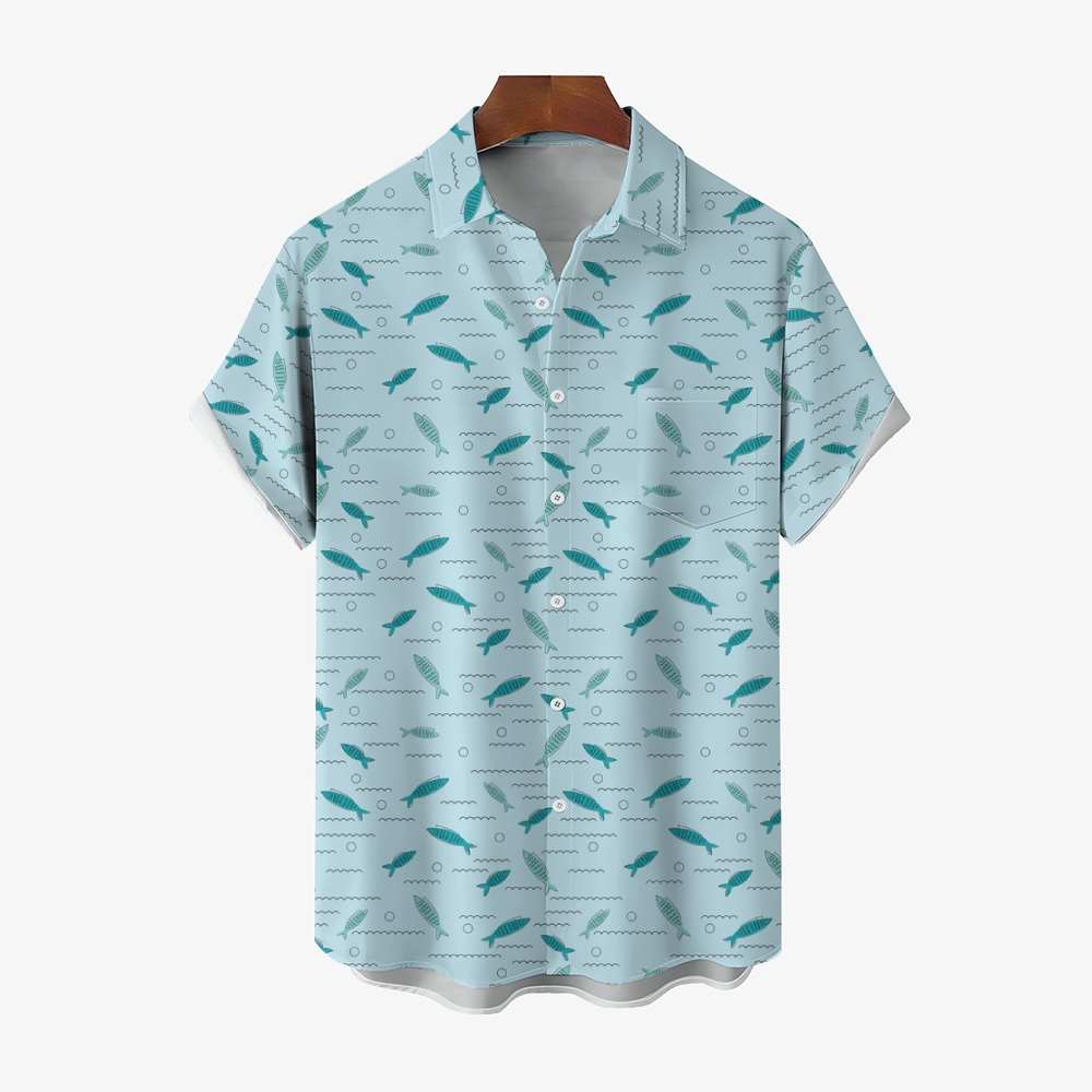 Men's Fish Print Hawaiian Casual Short Sleeve Shirt