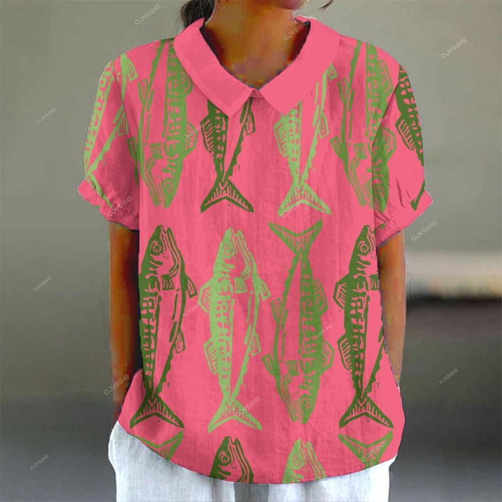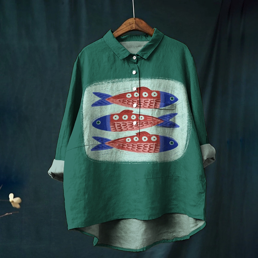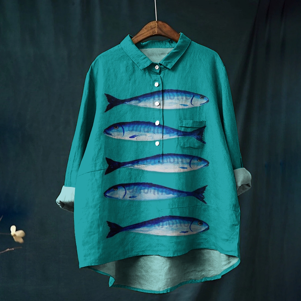 Women's Vintage Fish Print Casual Shirt
