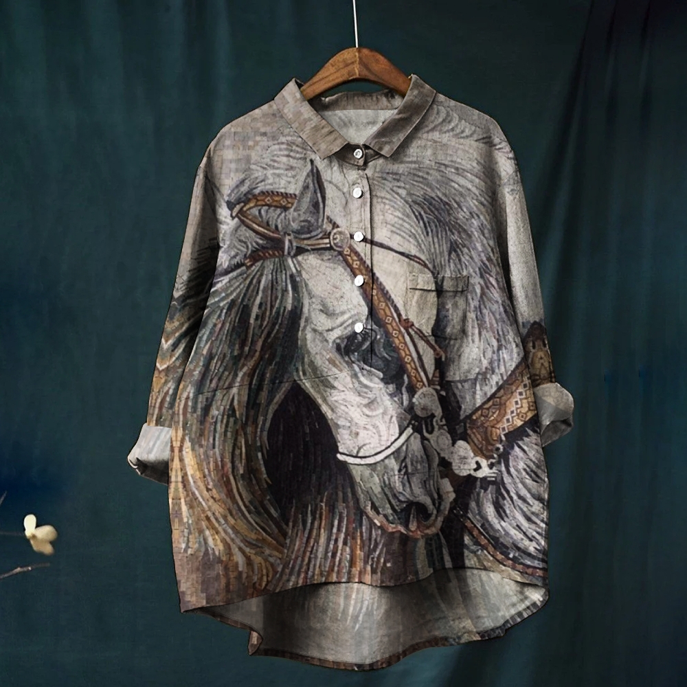 Women's Crying Horse Print Casual Shirt