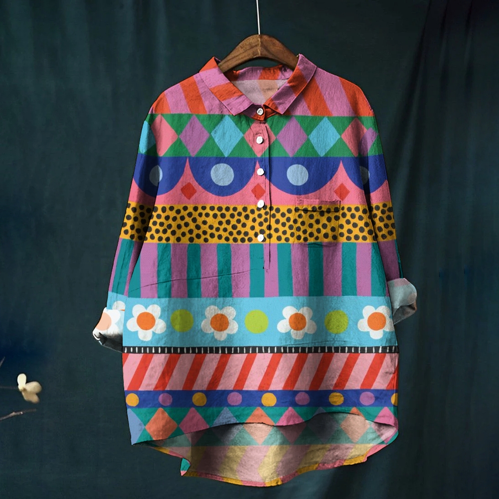 Women's Vintage Colorblock Print Casual Shirt