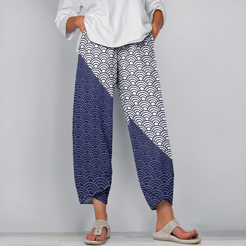 Women's Casual Vintage Japanese Waves Printed Pants