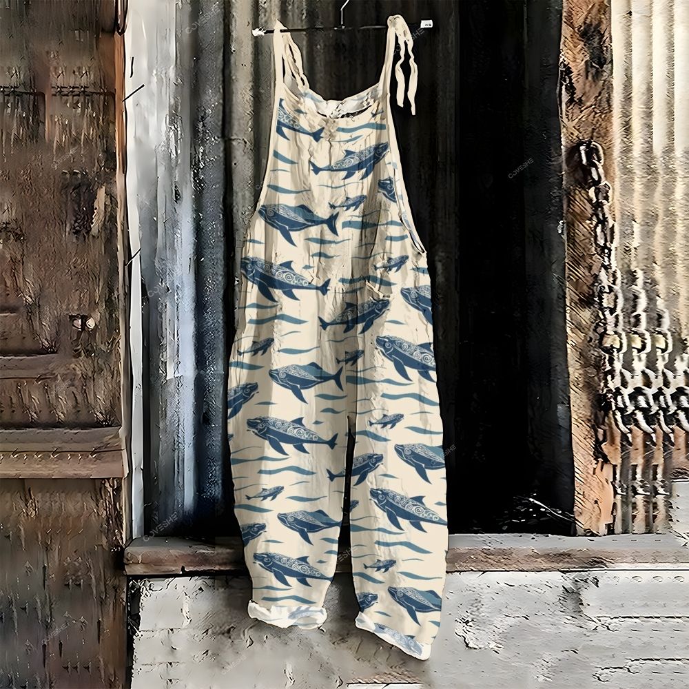 Women's Casual Vintage Shark Printed Jumpsuit